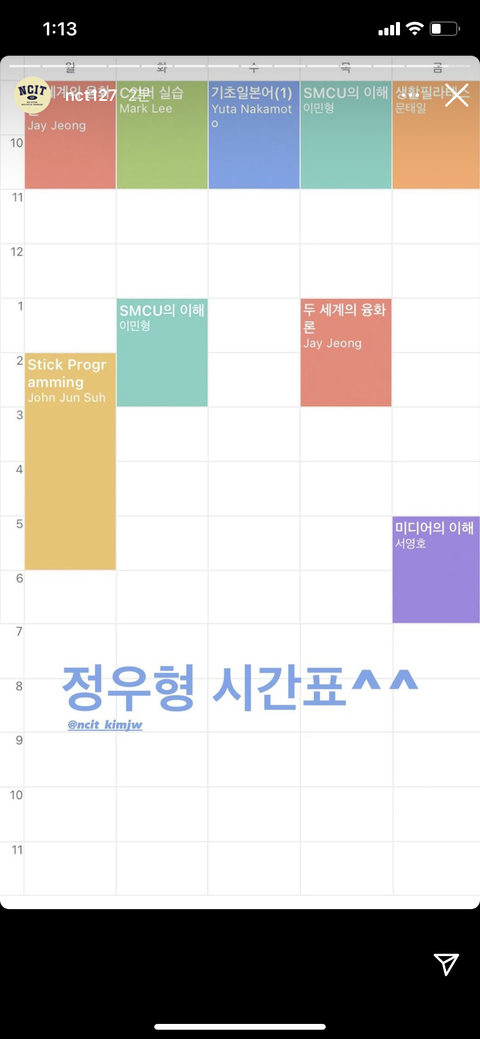 김정우 금요일 시간표 봐