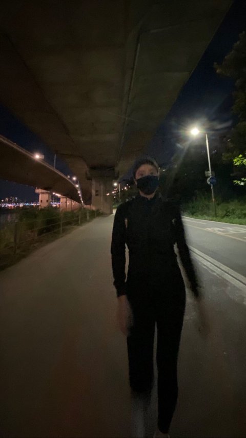 공개된 사진 속 김혜수는한강 공원에서 조깅을 하는 모습이 담겨있음