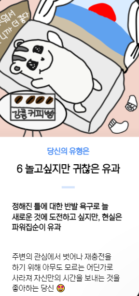 나 이거 했는데 엄마랑 오빠랑 셋 다 완전 다르게 나옴...ㅋㅋㅋㅋㅅㅋㅅㅋㅅㅋ 엄마 난 누워있고 싶다구,,,
