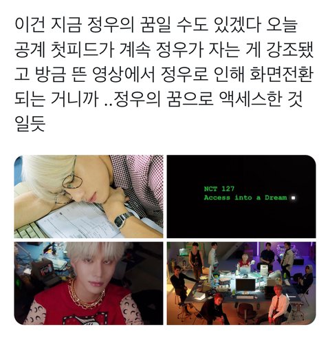 + 재현이가 꿈속에 끌어들인 증거: successfully accessed << 이 문구 뜨게 만든게 정재현임. 한마디로 멤버들이 정우 꿈에 엑세스 하게 만든 게 정재현이란 거. (스토리에 재현이 태그되어 있음)
