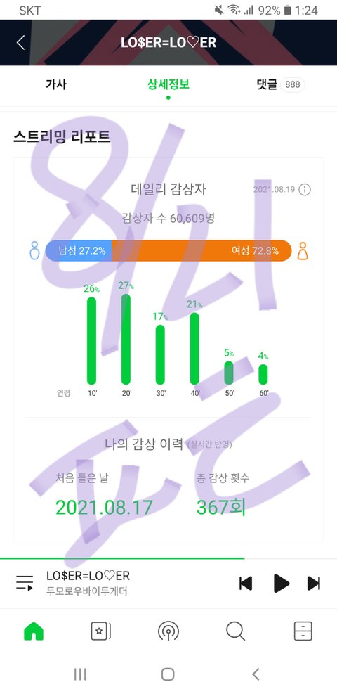 팬톡 보니까 스밍 잘못하고