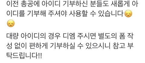 대량 아이디 기부는 폼 작성 번거로우면 디엠 줘도 된대