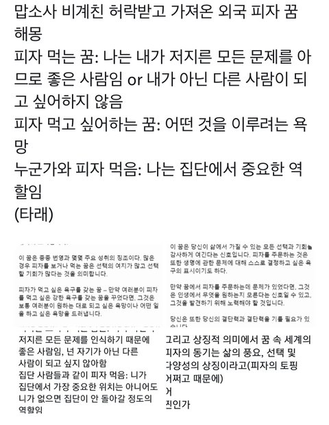 피자꿈 해몽한거 뜸 봐봐