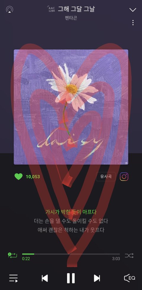 (스밍 중간에 한곡만 무한 반복 중이지만.. 잠깐만 모른척 해줘..)