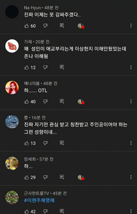 다른 멤버들 애교에는 아니다~아니야~ 다 이렇게 반응하고 자기 애교 안뽑히니까 이나은 뽑히니까 이유를 모르겠다고 하는데ㅋㅋㅋ 분명 이거 이나은이 현주한테 했으면 아직도 조리돌림 당할거임ㅇㅇ 그리고 마지막부분에 이현주가 이진솔보고 너가 더 귀여웠어! 말함ㅋㅋㅋ 이진솔은 좋다고 그래요?! 이러는데 이게 데뷔전부터 왕따였으면 이럴수가있냐고요