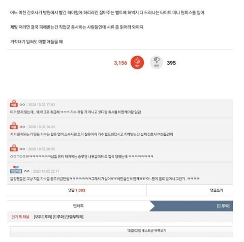 니 예전엔 뭐가문제냐고 댓글달았었는데 좀 크고 생각해보니까 야동이나 뮤비에 간호사복을 입고 섹슈얼하게 나오면 실제 간호사보고 성적인생각 하고 범죄 저지르는 또라이들이 있음. 여자들은 그냥 코스프레지만 피해는 죄없는 간호사들이 받는거자나. 승무원, 교복 코스프레도 마찬가지 그 외에는 뭘입던 노상관