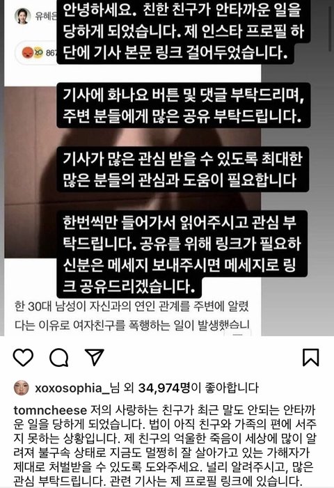 피해자 친구분께서 공론화 힘쓰고계시는데 너무 맘 아픈거같아