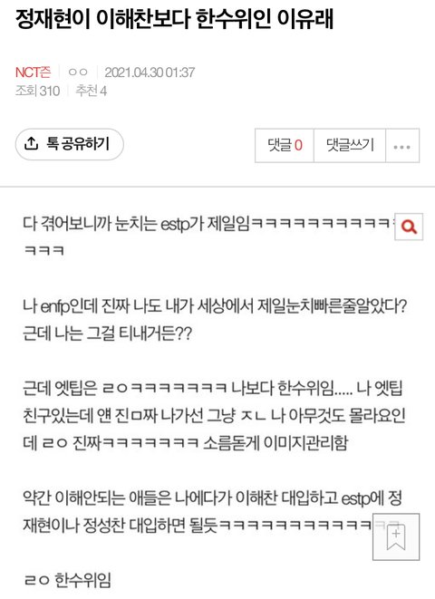 11. 정잰이랑 이햋 대입하면 너무미친것같은 mbti 과몰입