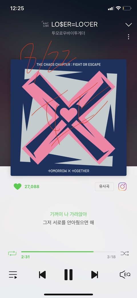 기분 안 좋을 때 들으면 암 어 루저~ 루저 그래 난 루저 하면서 픽 웃게 됨 러어어언 미친듯 크게 웃어줘 눈물은 이제 굿 바이 절대 뒤돌아보지마 할 때 같이 아무도 없는 새벽 차도에서 누구 신경 하나 안 쓰고 마구 뛰어다니는 느낌 같이 여기서 도망쳐주는 느낌 들어 그냥 뭔가 위로 되서 좋아