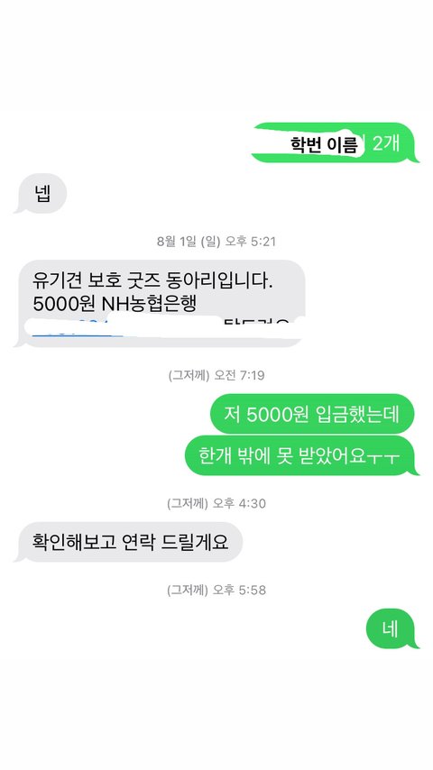 울학교에 뭔 동아리가 있는데 거기서 굿즈사면 유기견한테 기부하는거야. 거기서 여름방학전에 2500원짜리 강아지 키링을 두개샀어 그래서 개학식쯤에 받았거든? 근데 한개밖에 없는거야.. 개당황해서 그 내가 입금한사람 문자로 두개샀는데 한개밖에 못받았다고 했는데 확인해보고 연락준댔는데 아직도 연락이 없어…