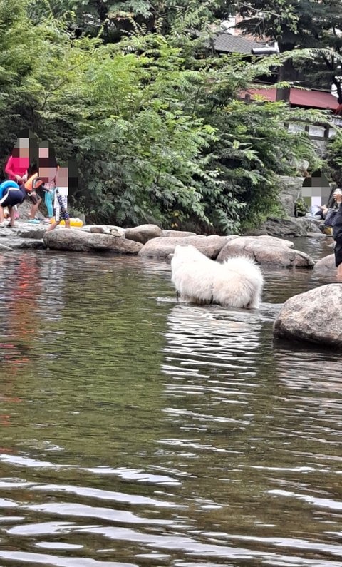 있는내내 개는 징검다리를 중심으로 양쪽계곡을 왔다갔다하며 목줄을 질질끌며 펄쩍펄쩍 뛰며 자유롭게 수영했고 견주는 커피를 마시거나 개사진을 찍어주며 바깥에서 보기만했구요..