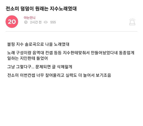 지수랑은 안어울림 욕이 아니라...지수가 머리꼭대기에서 춤춰 유 덤덤 하는게 상상 1도 안감