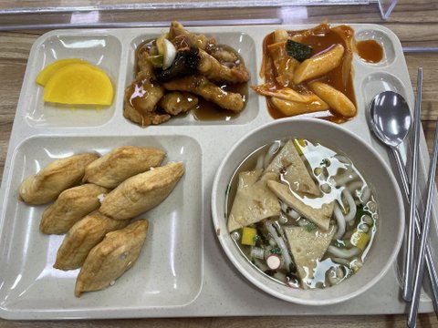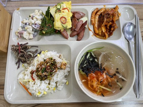 밥 맛있어보이고 학교급식처럼 다양하네.