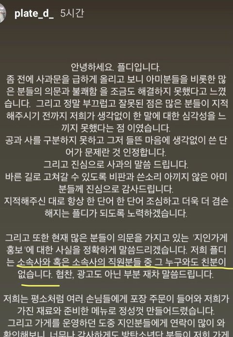 이번에 가게 주인이랑 하이브 직원 두 사람이 친분 있었다는