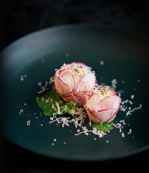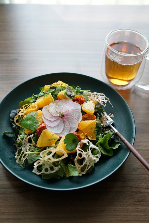 간단한 샐러드 였는데 중간에 꽃모양 래디쉬랑