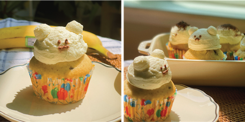 곰돌이 바닐라 크림을 올려준 바나나 컵케이크