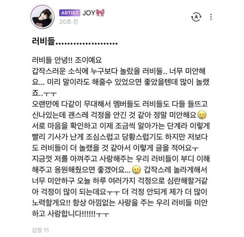 유사 ㅇㅈㄹ.... 레벨 유사 없는 편임ㅠㅠ 그래서 더더욱 왜 미안해하는지 모르겠음 오히려 혹여나 이미지 타격갈거 알면서 컴백 기간에 저렇게 올려버린 기자랑 제보한 사생이 ㅈㄴ 빡칠뿐이지ㅠㅠㅜㅠㅜ 박조이 미안해하지마 행복해야해ㅠㅜㅠㅜㅠㅠ