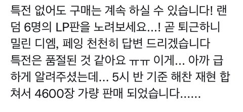 해님 LP판은 특전 마감이어도 사면 받을수 있는 거 맞지?