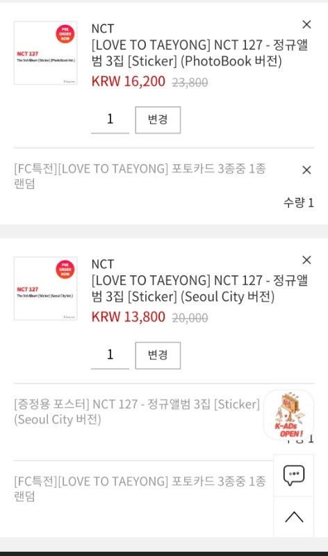 나 맨날 오프깡하다가 첨으로 공구타봄 이렇게 사면 중복도 없고 딱 버전별로 하나씩 오는 거 맞지????? 스티커 저렇게 2개 고르는것두 맞고??