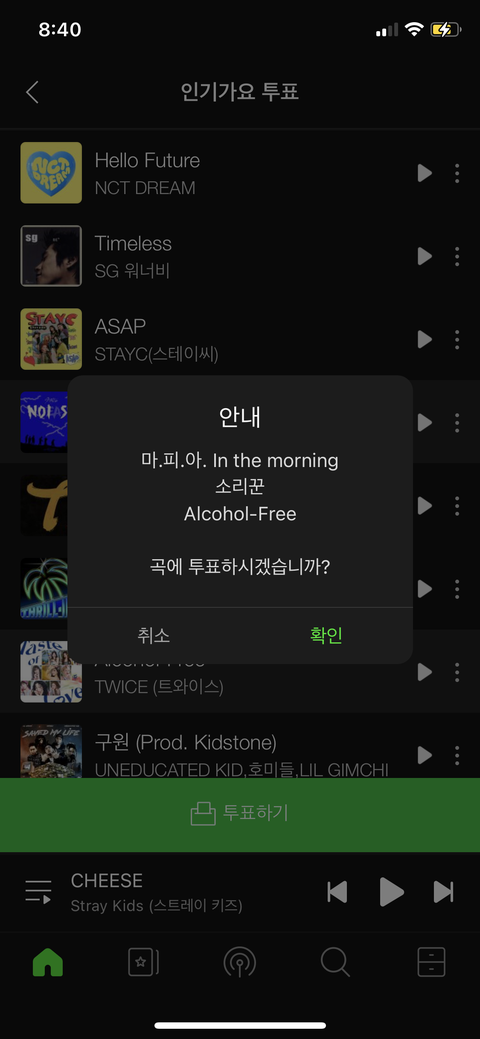 인가 투표하자 ! 3곡 선택해야해서 제왑선택했단