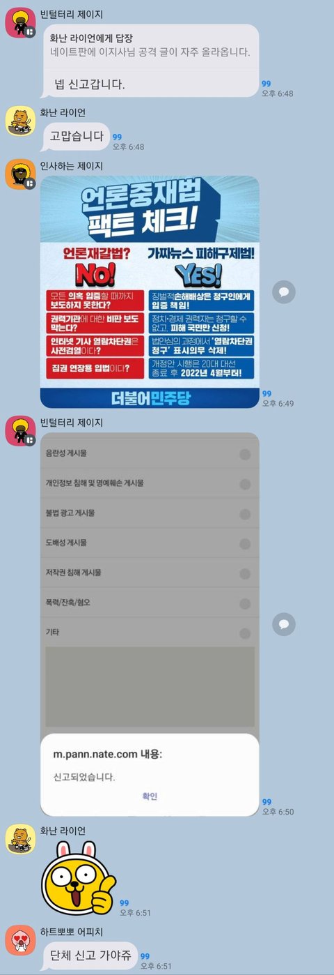 단톡방 만들어서 조직적으로 신고하네요 ㅎㅎㅎㅎ