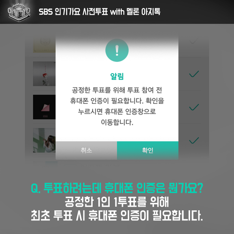 3곡 선택해야 하고 휴대폰 인증은 투표하기 누르면 떠!!