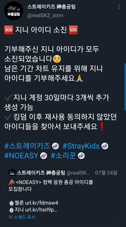 우리 지니 조금씩 순위 오르는거 알지? 총공팀에서 계속 총공을 진행중인데 아이디 다썼대ㅠㅠ 아이디 기부 안한 테이들, 만든지 30일 지난 테이들 등등 기부 부탁해
