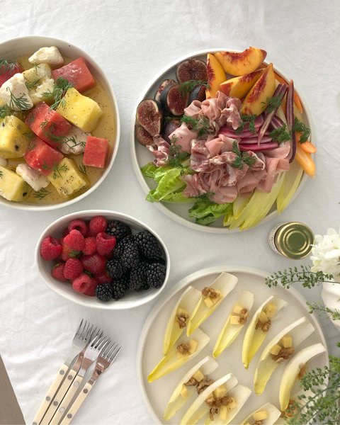 점심은 나가서 다같이 먹을거라 간단하게 다과스타일로 준비했는데 앤다이브 위에 꿀과 버터로 글레이징한 호두와 트러플 치즈!!