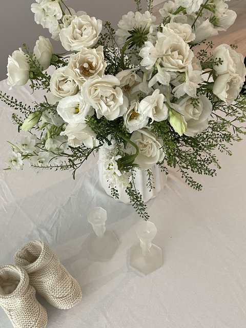 저희동네에는 마음에 드는 꽃집이없어서 플로리스트 분께 제가원하는 컨셉을 말씀드린후 그분 스튜디오에 방문해서 함께 작업한 결과물이에요!! 후 시간과 정성을 쏟는다고 쏟았는데! ㅠㅠ 어떤가요? ㅜㅜ 다음에는 도 잘할수 있을거같은데! 늘 살짝 아쉬움이 남네요! 기저귀 케이크랑 다른 데코들을 곁들었ㅇㅓ도 좋았겠다하는 ..