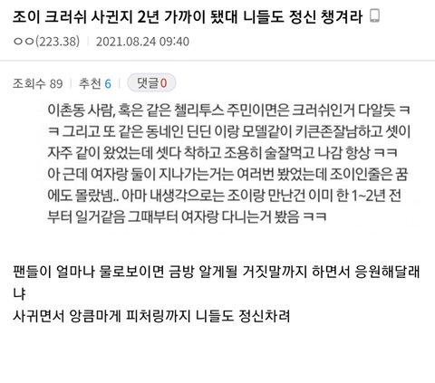 크러쉬는 조이랑 연애 공개된 순간 그 전에 같이 있던 여자는 전부 조이가 되는거냐?? ㅋ