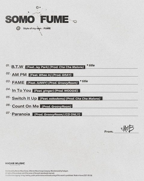 새로 공개된 하이어뮤직 소속 JB의 컴백 앨범속 피쳐링 라인
