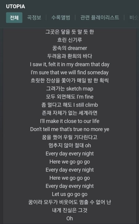 에이티즈 3집에 유토피아라는 노래의 가사가 꿈에서 봤던 유토피아를 현실에서 찾아다닌다는 내용이었지않아?