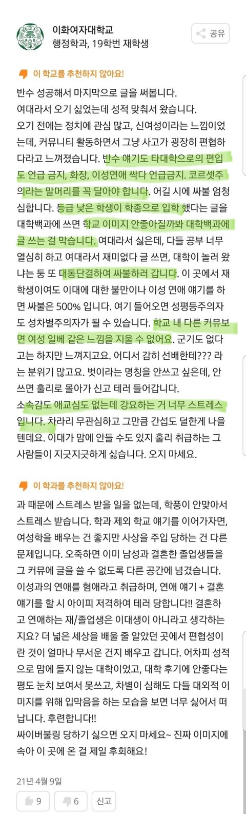 이대 훌리들이 잘 모르는 중하위권 수험생들한테 훌짓하면서 대장노릇하다가