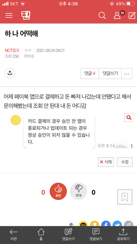 이 쓰닌데 카드사에 문의해봣는데도 이용내역에는 안 나온다는데 어떡해