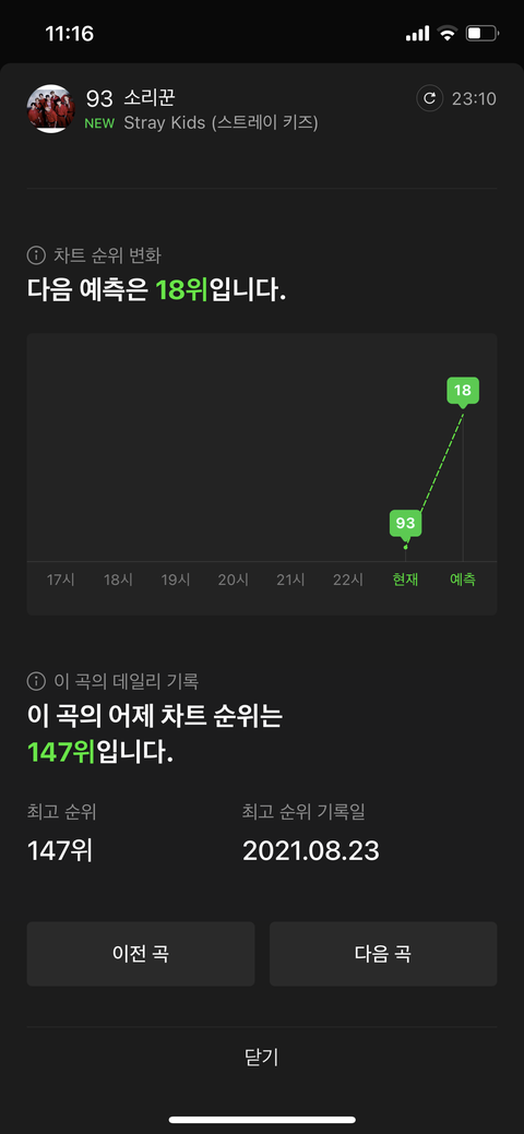 다음 예상 순위 18!! 꼭꼭 차트인 유지합시다!!