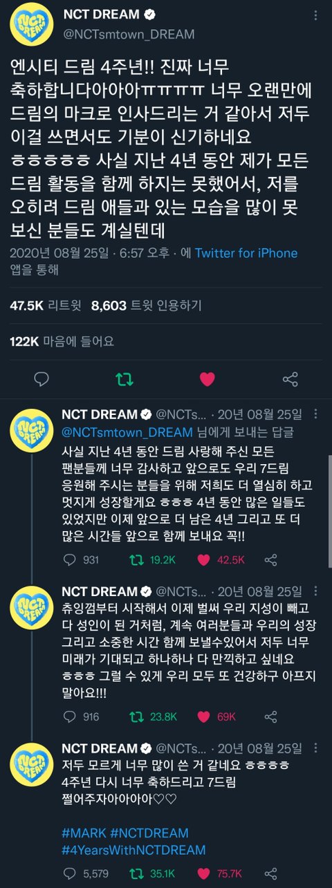 마크 합류하고 4주년 인사