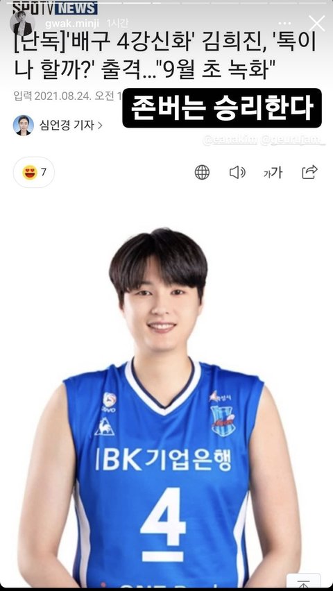 김희진 선수의 "톡이나 할까?" 출연 소식(김이나 작가님 진행)