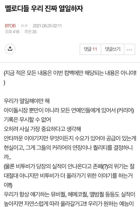 사실 내가 쓴 글은 아닌데 너무 다 공감이 가서,, 근데 팬톡 랭킹(?)에 없길래,,! 글이 길어서 앞부분만 캡처해왔어 제목 검색하면 나올거야! +7위됐당!