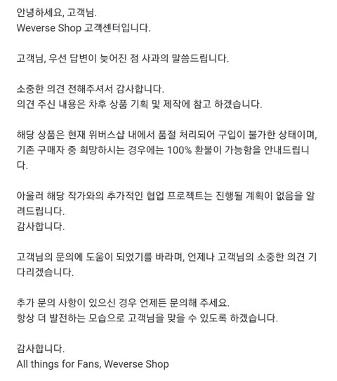 ㅋㄷㄹ 작가 관련 위버스 답변이래