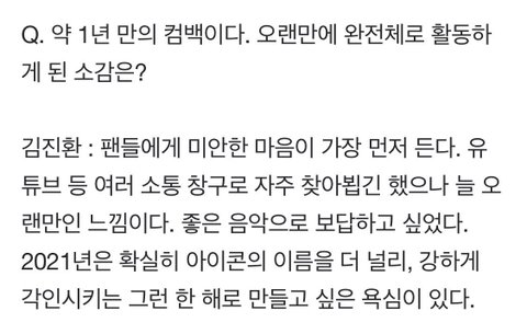 이렇게 진심인 애들한테 무슨짓을 한거냐.... 이거 말고도 준회가 이번해는 농구공처럼 도약하자고 한것도 있고. 애들이 아이콘의 미래에 관해서 말한것도 많고 본인은 심지어 옆에 있으니까 더 잘 알았을텐데.
