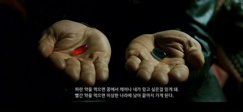 매트릭스에 나오는 빨간약 아냐? 전부터 궁예 보면 도잉이링 같이 꿈에 머물자는 입장이잖아 근데 영화에서 빨간약을 먹으면 이상한 나라에 머물게 된대