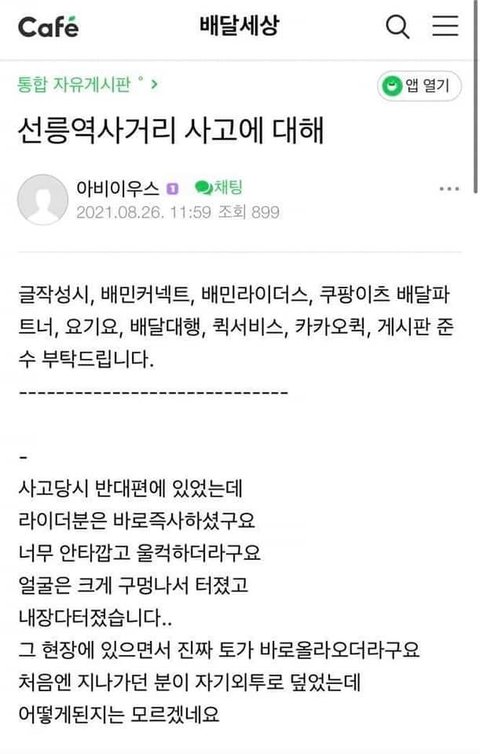 신호 다 지키고 배달해도 한 달 250~300은 벌던데. 월 800~1000 찍는다고 목숨걸고 달리는 애들때문에 저 사단이 나는거임. 실제로 강남지역 쿠팡 배민 이런 배달대행 하는 사람들은 내가 월 최고로 얼마찍었나 이런 부심, 경쟁심 있어서 더 무리하게 다님. 이걸 왜 알고있냐면 전남친이 딸배했었거든ㅋㅋㅋㅋㅋ 잠깐 일 쉬면서 한다더니 점점 다른 딸배랑 똑같이 변해가더라 근묵자흑임 저 직업군은 편견 안가질래야 안가질수가 없음