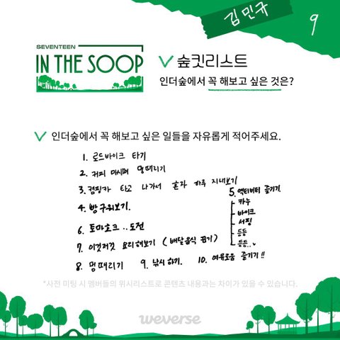 아니 1번부터 9번까지 다하는데 10번 어떻게 여유로울슈잇냐고 너무 웃기고 기여움 민규 혼자 숲에서 한달살기