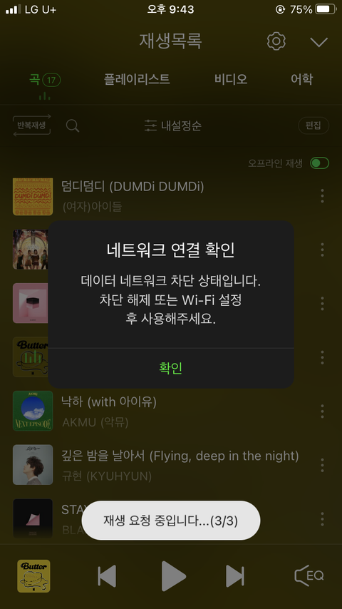 아니 나 멜론 오프라인 재생이 안되는데 나만 이런거야? 어떻게 해야될지 알려줘 ㅠㅠㅠ 오프라인 등록도 내 폰으로 되어있는 거 맞고 왜 이러는지 모르겠넹..