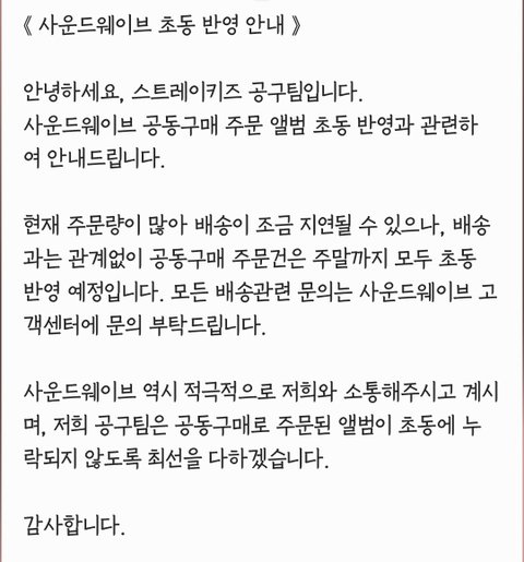 사운드웨이브 초동 반영안내