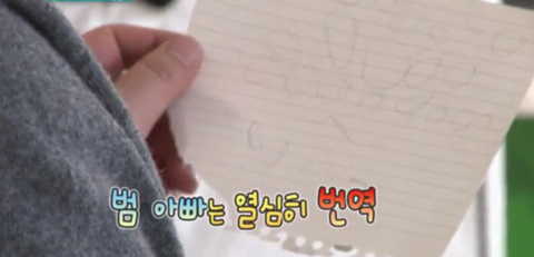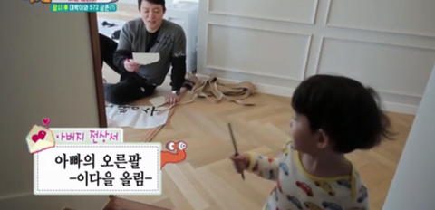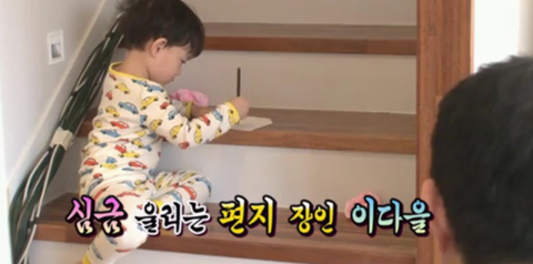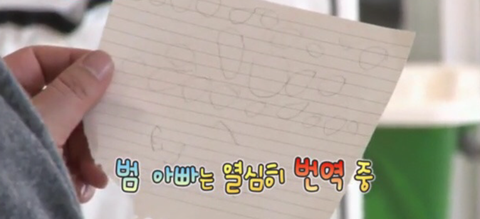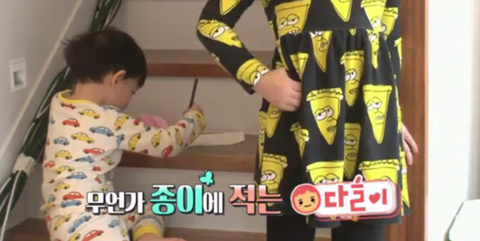무언가 종이에 적고 있는 배우 이범수의 아들 다을이