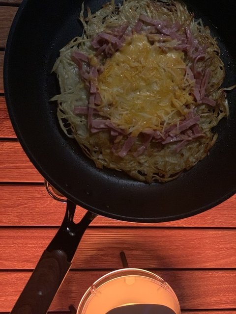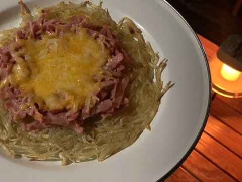 감자가 바삭하고 노릇하게 익었다 싶을때 익혀뒀던 베이컨 올리고 마지막에 체다치즈 올려서