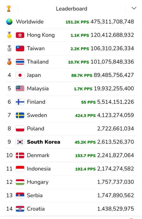 우리나라 9위임 순위 올라가게 손가락 연타 좀 부탁해