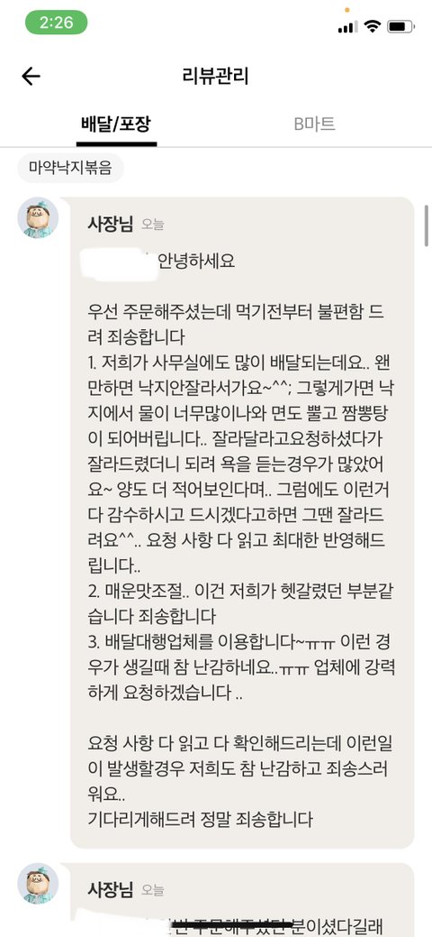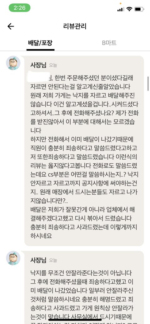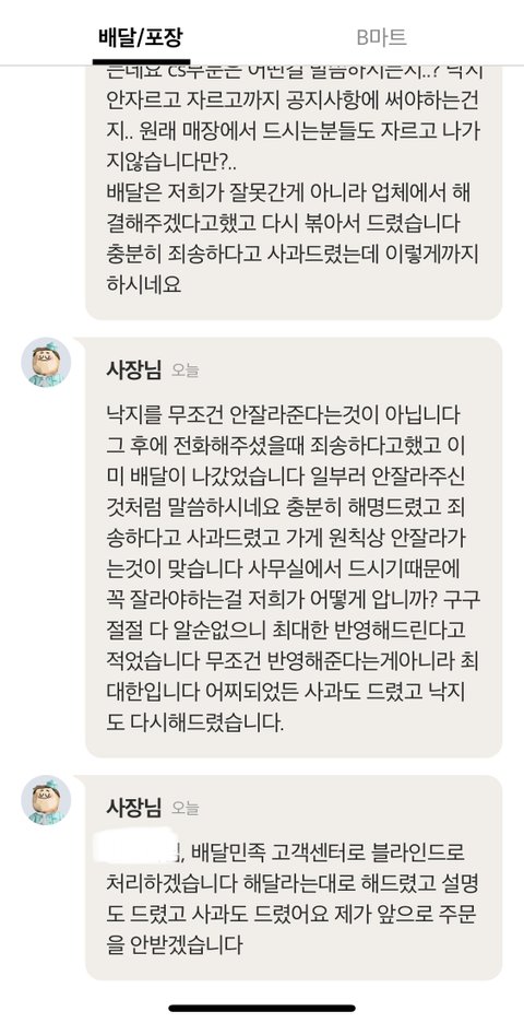 사장님이 블라인드 처리한다하네요.