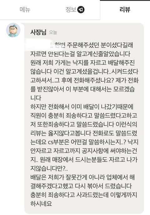 다만 속상한 점은 여기서 리뷰를 남겨 사장님과